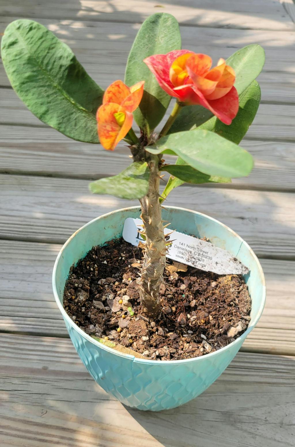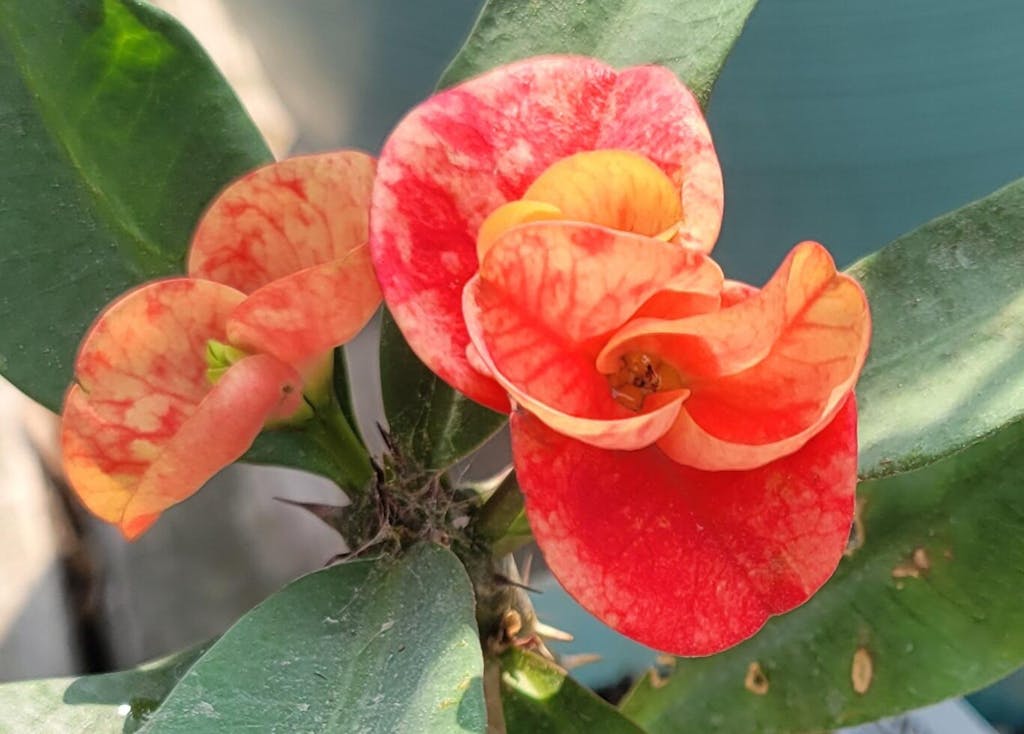 Like the magnificence of the setting sun, Crown of Thorns ‘Sunset Splendor’ has radiant hues of light and dark orange to captivate all who see it. The large 1-2” flowers often grow as doubles if the plant is in favorable conditions. It thrives on a sunny windowsill or grow it outside during the warm summer months. Euphorbias are indestructible houseplants. Be sure to let the soil dry out between waterings.