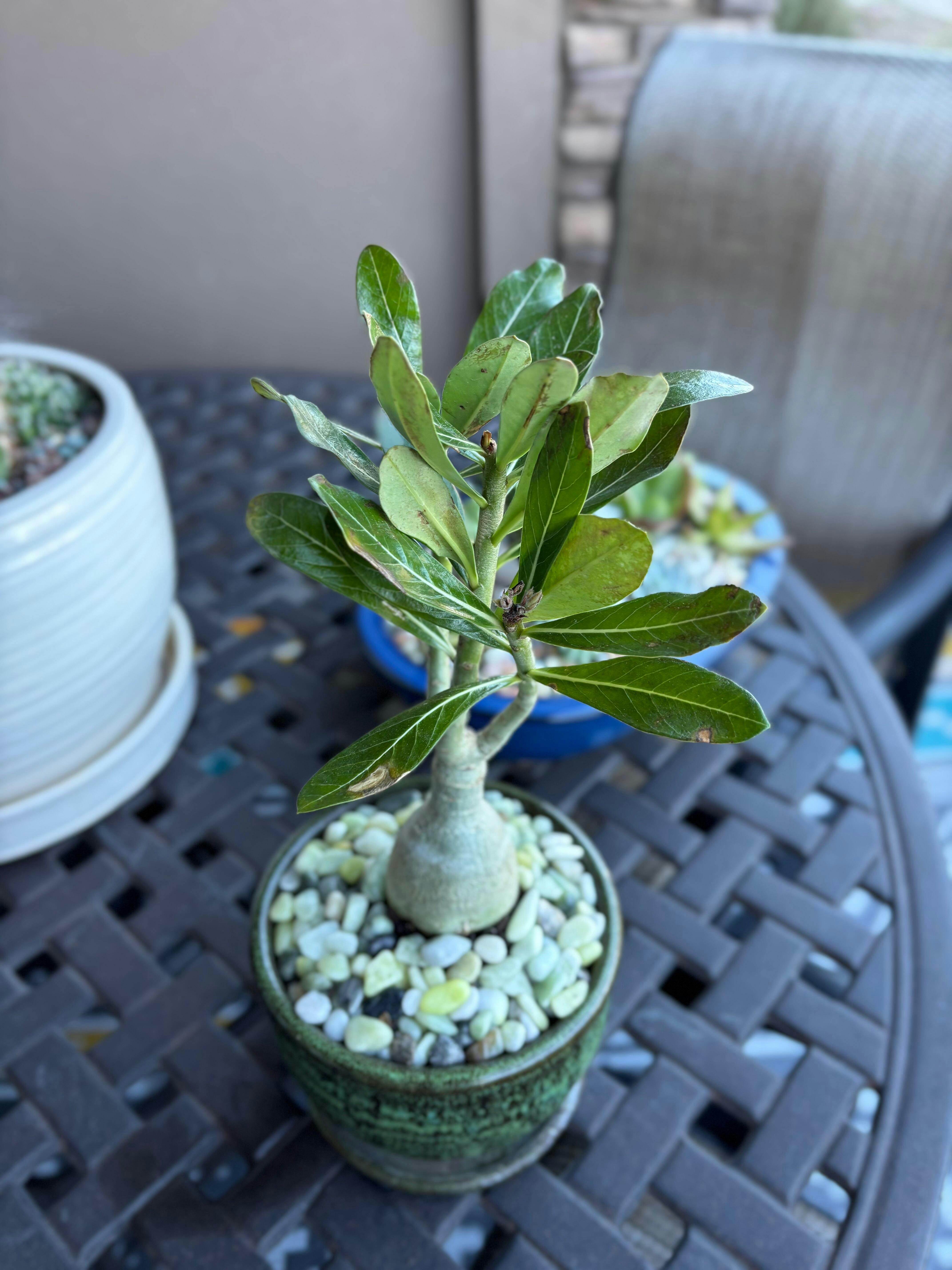 TMiller I have purchased several Adenium's over the years from Logee's and you never disappoint. As usual, the plant arrived in good condition (the were some markings/brown spots on leaves; I attributed it to moist leaves sticking together during shipment) and healthy. It was also a nice sized specimen. Have potted it up and it has adjusted well. Fortunately living in the desert gives me apple opportunity to get it out in the sun during the day.