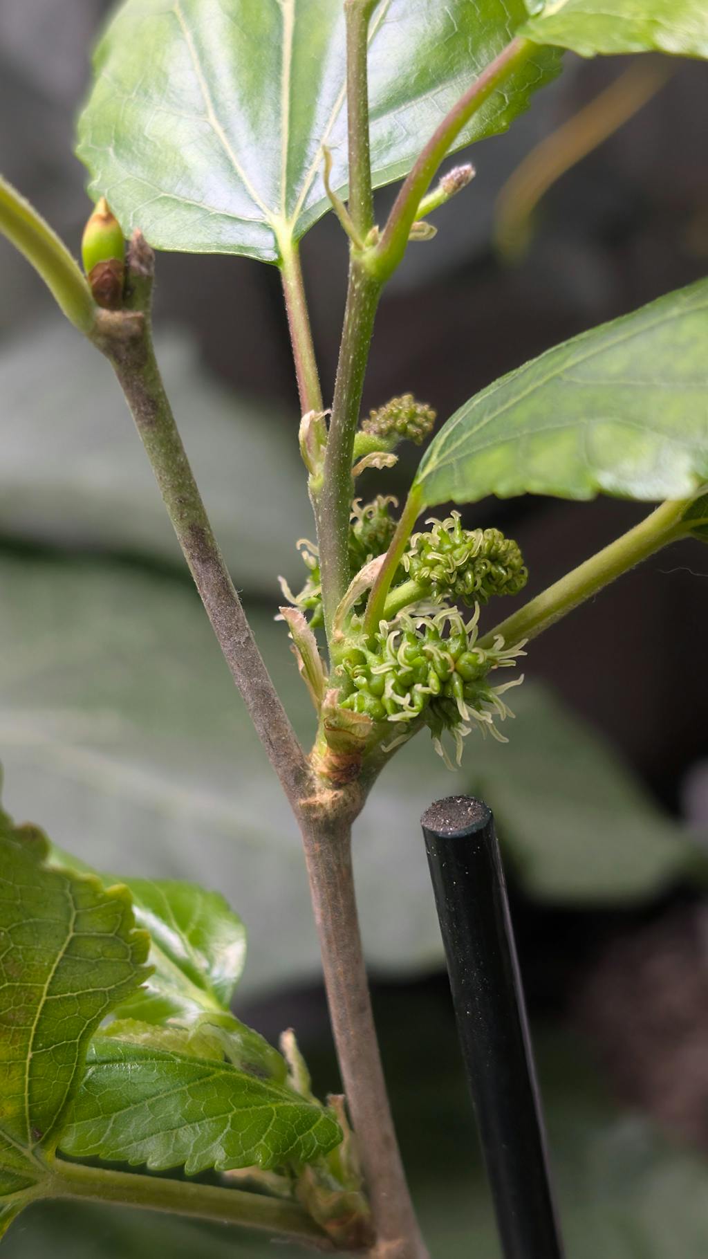 Rare and hard-to-find, this dwarf mulberry has performed admirably for us as a container plant. The fruit is larger than our dwarf mulberry and the plant flowers and fruits most of the year in repeating cycles. When grown as a container plant, its plump sweet fruit is easily picked and is also easily protected from birds with lightweight netting. It is hardy as a garden plant in zones 7-9. When grown outdoors, it is deciduous. When grown inside, it will hold its leaves and continue to flower and fruit as long as the light level is high enough.